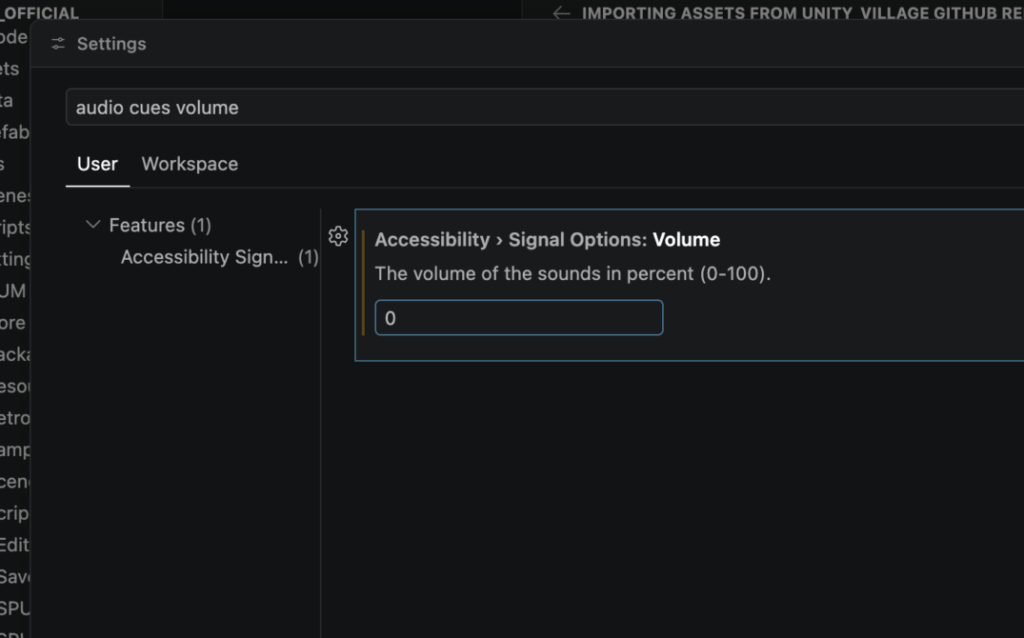 Setting -> 검색창에 audio cues volume 을 입력하면, 소리가 나지 않습니다.